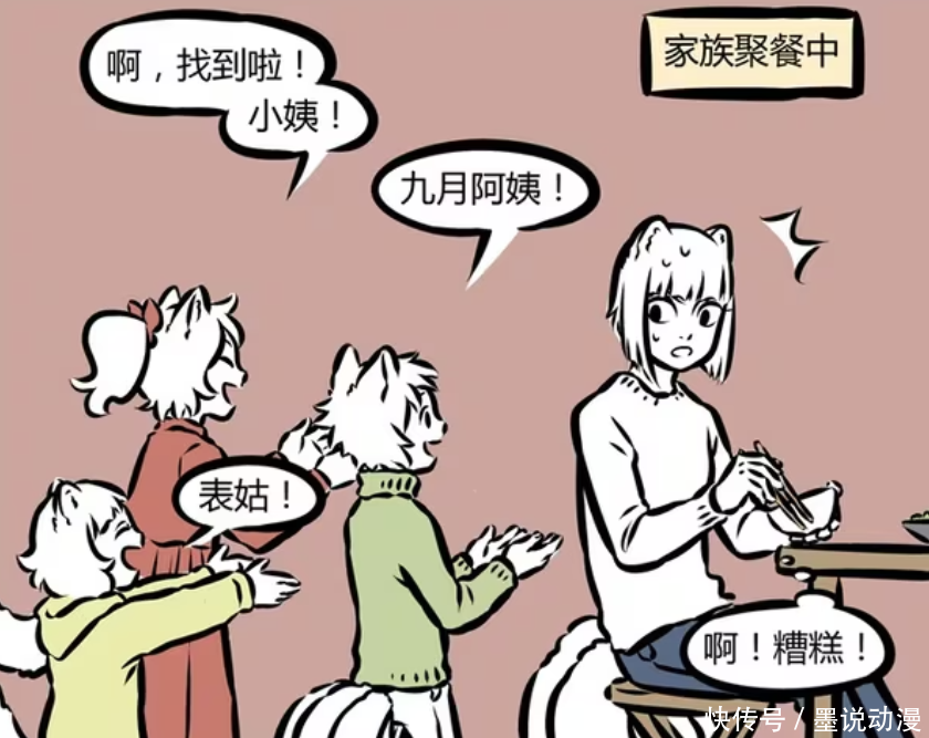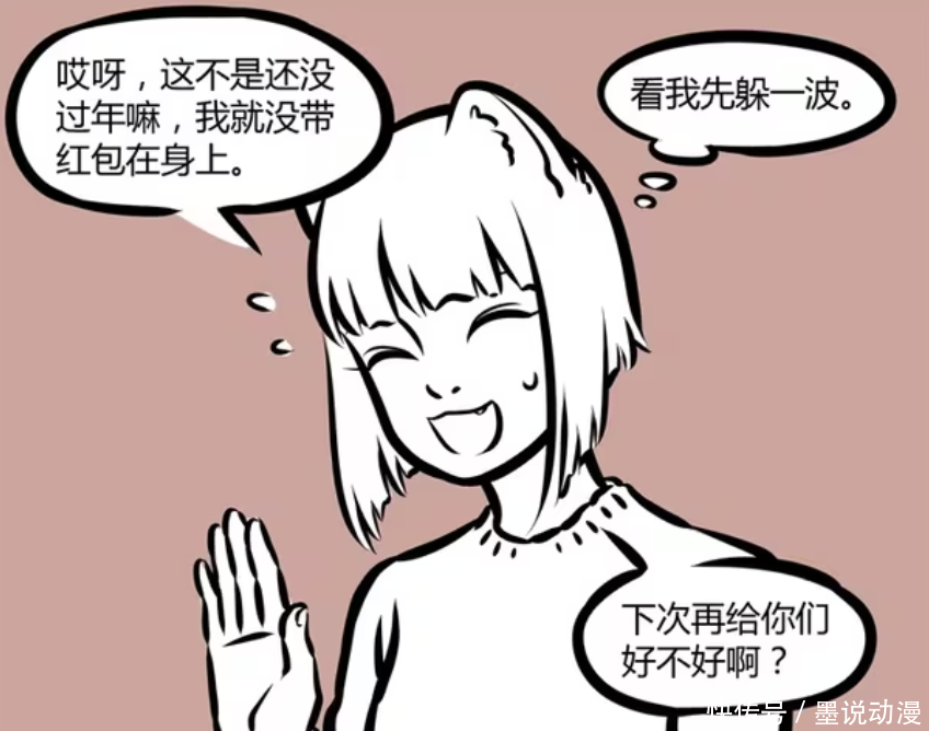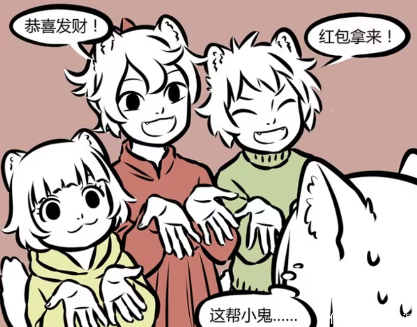 《非人哉》漫画的设定是神兽精怪与人类共存,所以到过年期间,九月和敖烈也会经常听到《恭喜发财》这首歌曲。因为听太多遍,九月和敖烈都被《恭喜发财》洗脑,甚至会不自觉摇起头来。至于九月,虽然只有两百多岁51策略,但在九尾狐家族中,也算是长辈。家族聚会之中,九尾狐小辈会找九月要红包,就算她想要拒绝,都无法逃掉。