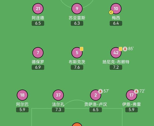 本场过后,有4个不争事实:第1,梅西本场没有状态,5次射门0射正,6次过人尝试1次成功,赛后评分6.4,少有的重大比赛迷失。第2,梅西的职业生涯冠军数量仍是46冠,历史第一。第3,西雅图海湾人夺得了队史第1座联盟杯冠军,改写历史。第4,德保罗31岁就来到美职联踢球,没心气了,这场表现不佳,世界杯很难首发。