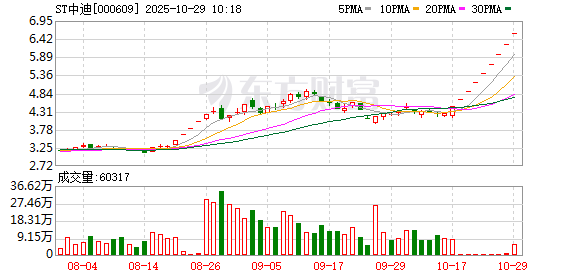 ST中迪(维权)盘中涨停,已连收9个涨停板,截至9:27,该股报6.57元,换手率1.65%,成交量479.26万股,成交金额3148.75万元,涨停板封单金额为2.56亿元。连续涨停期间,该股累计上涨54.95%,累计换手率为6.32%。最新A股总市值达19.66亿元,A股流通市值19.12亿元。